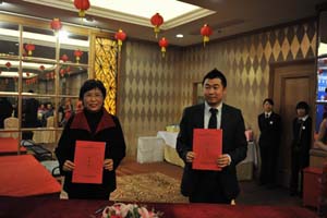 签约仪式前,高鸿集团董事长王旭棣介绍了高鸿公司的概况、发展现状、及与材料所表面事业部汪爱英研究员课题组为主的合作洽谈历程,表达了对今后双方合作发展的美好祝愿。崔平所长代表材料所首先表达了双方达成合作的喜悦之情,并盛赞了湖州市五年来的快速发展,她表示材料所虽建在宁波,但 “立足宁波,服务浙江”是我所一直贯彻的主要工作理念,材料所的科研人员一定会本着真诚合作、追求创新的理念,与企业共谋大计,共同发展。最后她希望能借此合作平台,材料所与湖州市能在多个领域展开紧密合作,结出硕果,并祝愿湖州的明天发展更好。
