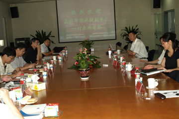 为学习借鉴我所在科技创新平台建设、科研创新体制机制、高科技人才引进及高新科技成果转化与产业化等方面的先进经验,2009年8月8日上午,嘉兴市柴永强副市长一行八人来我所进行考察交流。何晓南副所长热情接待了来访客人,转移办副主任张安将、综合办主任助理韦玮、副主任陶永怀等相关人员参加了交流会。