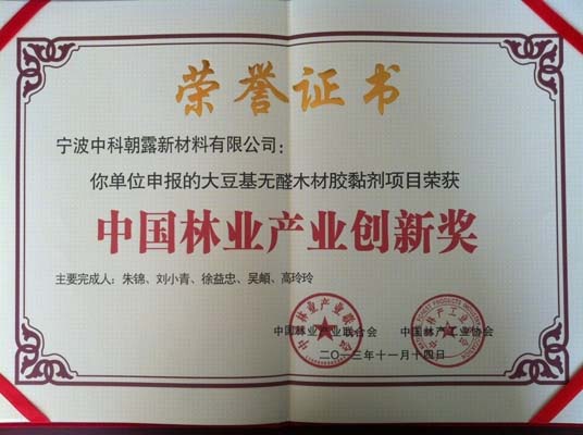 “大豆基无醛木材胶黏剂”获中国林业产业创新一等奖