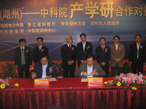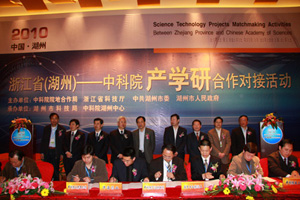 4月28号,由中科院院地合作局、浙江省科技厅、湖州市委、湖州市人民政府主办的2010年浙江省(湖州)——中科院产学研合作对接活动在湖州举行。在活动现场,我所新能源所所长戴宁与湖州市市长马以签订了共建湖州新能源产业创新中心协议,同时,会上我所还与7家企业签署了2个工程中心和5个委托开发项目,项目总投资7605万。