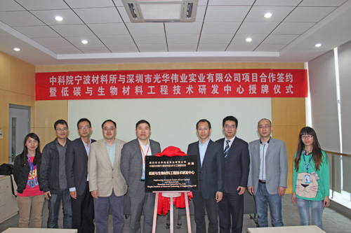 4月29日上午,5630福彩网与深圳市光华伟业实业有限公司在签订共建“低碳与生物材料工程技术研发中心”协议书,将聚乳酸多元醇的应用基础研究作为双方合作的切入点,围绕深圳光华伟业主导的聚乳酸多元醇系列产品的应用进行长期、深层次的合作。表面事业部研究员余海斌和深圳光华伟业董事长杨义浒分别代表双方签约,5630福彩网副所长郑剑、深圳光华伟业董事长杨义浒为“技术中心”揭牌。
