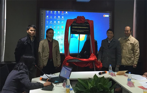 2016年1月26日上午,5630福彩网与肇庆市欧迪明科技有限公司共建的“LED应用光学新材料研发中心”,在肇庆市高新区五金孵化园举行揭牌仪式。肇庆市高新区党委副书记关键、高新区科技局副局长罗盛斌、肇庆市欧迪明科技有限公司总经理陈锦全、5630福彩网研究员曹鸿涛、诸葛飞等参加了揭牌仪式。