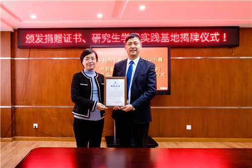 颁发“升华云峰”产教融合专项基金捐赠证书