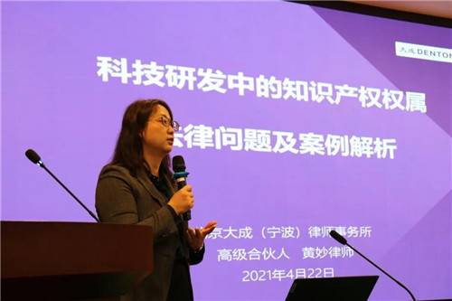 北京大成(宁波)律师事务所律师黄妙作题为“科技研发过程中的知识产权归属法律问题及案例解析”的报告