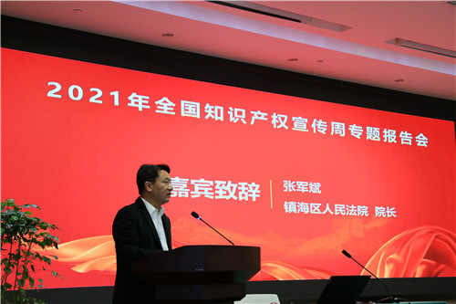 镇海区人民法院院长张军斌作为嘉宾介绍了镇海法院近年来对科技创新保护的系列举措和举办的活动,并表示司法系统将继续为优化营商环境奋力护航,为科技创新有效赋能。
