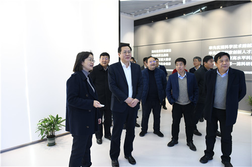 孙黎明一行首先参观了杭州湾园区展厅,杭州湾园区负责人韦玮详细介绍了园区的定位、一期建设历程、科研布局、人才队伍、平台建设、科技成果产出、项目引进及产业化情况和二期的建设展望。