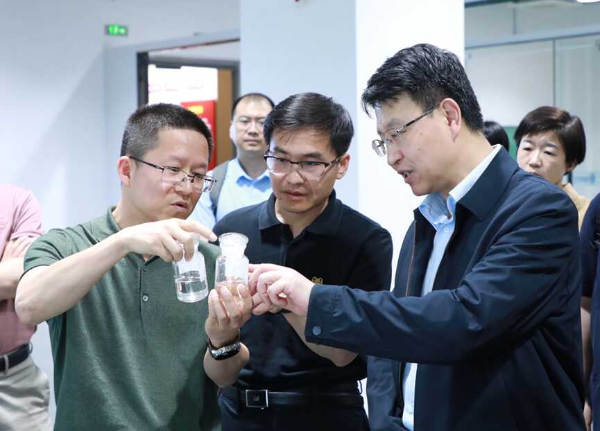 陈燕斌一行还参观了海洋关键材料重点实验室,了解了目前在研项目的进展和实验室的相关最新科研成果。