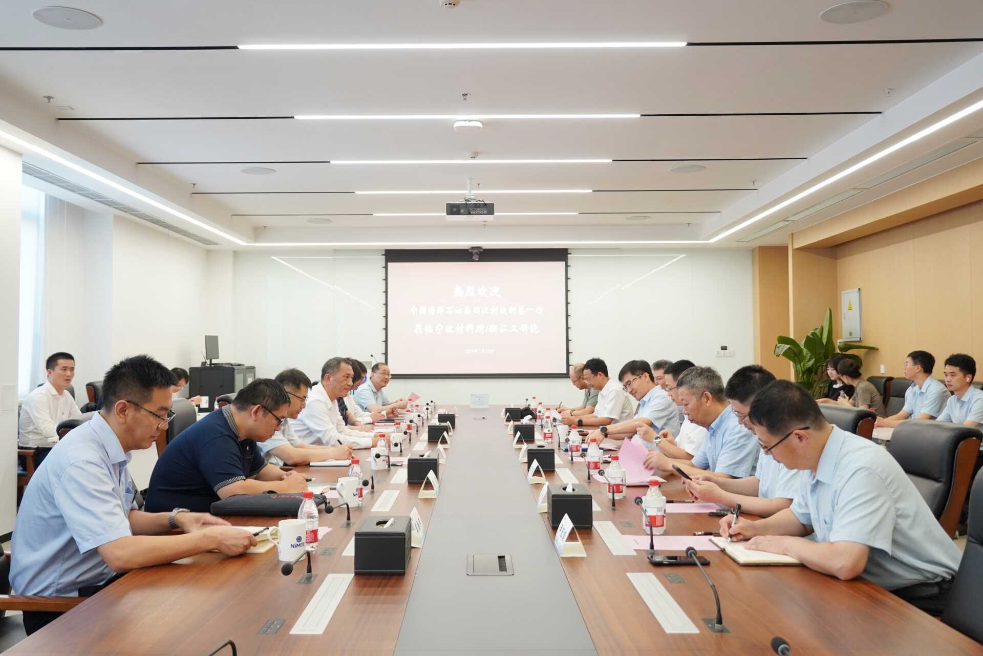 7月18日,中国海洋石油集团有限公司(以下简称“中国海油”)党组成员、副总经理汪剑波率队来访5630福彩网/浙江工业技术研究院,5630福彩网副所长(主持工作)/浙江工研院院长王立平、浙江工研院执行副院长杨正平热情接待了汪剑波一行。双方就深化海洋石油领域的合作进行了广泛交流与探讨。