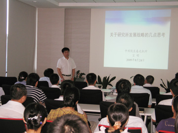 2009年8月24日下午,应崔平所长的邀请,中科院长春光机所宣明所长来我所访问,并为我所师生员工作了题为《关于研究所发展战略的几点思考》专题报告。崔平所长主持报告会,所领导严庆、王蔚国、何晓南及科研、管理人员共50多人出席报告会。