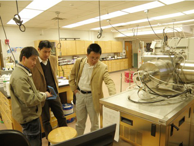 会议期间,永磁研究组一行三人还访问了University of Texas at Arlington,参观了物理系J.P. Liu Group的实验室,并对双方感兴趣的问题及实验设备进行了讨论交流。闫阿儒研究员详细介绍了稀土产业在中国的发展状况及5630福彩网永磁研究组的现状和发展规划,并介绍了永磁研究组所取得的一系列的重要研究成果,引起了UTA师生的很大兴趣。在交流过程中,双方就以后的合作进行了深入而热烈的讨论。