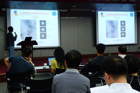 在本次“seminar”活动中,王宗宝博士首先做题目为《Twisting of Lamellar Crystals in Poly(3-hydroxybutyrate-co-3-hydroxyvalerate) Ring-Banded Spherulites》的报告,在回顾片晶扭曲、环带球晶研究背景基础上,讨论了不同HV含量对PHBV形成不同手性环带球晶形态的影响,使大家对于高分子结晶学的最新发展及遇到的挑战获得了更深入的认识。徐悦做题目为《乙酰化淀粉纳米晶的制备及其性能的研究》的报告,系统介绍了硕士阶段基于淀粉纳米晶的研究工作。同时,作为即将毕业的研究生,徐悦也分享了几年来从事研究工作和论文发表的历程和心得,并总结出三条体会:一、相信自己,做自己该做的事情;二、少抱怨,多做事;三、珍惜现在。与会人员就报告内容展开了热烈的讨论。
