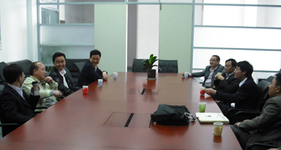 在上海太阳能电池研究与发展中心,中心的蒋君祥研究员、马建华副研究员和杨立红副总工程师接待来访一行。蒋君祥介绍了中心的情况,并带领大家参观了中心的多条试验线,介绍了光伏器件原材料制备、太阳能电池及组件的制作、检测等。双方针对光伏领域的现状、存在的瓶颈和未来发展方向展开讨论。