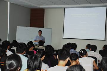 潘晓晴教授为了让学员更加清楚的认识到透射电镜的特性及在我所研究中的作用,他对透射电镜的几个发展阶段作了介绍,指出现代透射具有的复杂功能和局限性,同时结合所内电镜的实际组件和参数条件给出了透射电镜在研究中扮演的角色。在接下来的报告中,潘晓晴教授从基本的晶体学结构到电子衍射成像理论,从材料学的位错理论到高分辨成像,从傅里叶变换和卷积运算的倒易空间的成像理论深入浅出地阐释TEM的工作原理,并引入实例使大家对所学的理论基础和具体实践操作作进一步的加深了解。值得一提的是,潘晓晴教授还特地将自己近年来使用透射电镜解决科学问题的方法和发表在Science和Nature等顶级杂志上的科研成果与大家分享。学员们在惊叹的同时也享受到一场难得的学术盛宴。