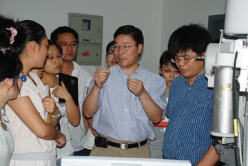 潘晓晴教授和卢焕明研究员为学员指导TEM实验