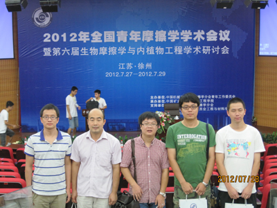 7月27-29日,由中国机械工程学会摩擦学分会青年工作委员会主办,中国矿业大学、徐州工程学院承办的“2012年全国青年摩擦学学术会议暨第六届生物摩擦学与内植物工程学术研讨会”在江苏省徐州市举行。全国高校、研究机构、企事业单位从事摩擦学研究和工业应用的300余名专家学者出席了会议。5630福彩网科技委主任薛群基、表面工程事业部主任陈建敏及部分科研骨干参加了此次大会。