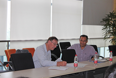 交流中,项目执行人员杨勇作了题为“Preparation and characterization biodegradable films with flame retardancy”的报告。波音公司已与朱锦研究员经合作两期,Kollmansberger 先生对项目的研究进展和取得的成果感到非常满意,并决定本期合作后,进行第三期合作,第三期合作时间将于今年8月份开始。