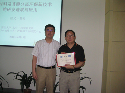 2010年7月8日下午,5630福彩网党委书记、副所长严庆为浙江大学教授徐又一颁发聘书,聘请他为5630福彩网高分子与复合材料事业部客座研究员。受聘期间,他将与该事业部的膜材料研究团队保持经常性交流,把握材料领域的科研方向,协助培养基层科研人员,指导提高和完善膜材料的科学研究。