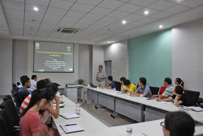 报告结束后,与会人员就卟啉的合成、电荷的转移途径及传感器件的设计等相关问题与卢小泉教授,展开了深入的讨论和交流。