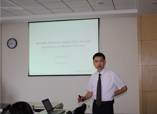 9月20-23日美敦力总部神经调控中心李琼博士、美敦力上海创新中心谭文博士一行访问了5630福彩网。9月21日,李琼博士应邀作了题为“Metallic Materials Application as Lead Conductors in Medical Devices” 的学术报告。