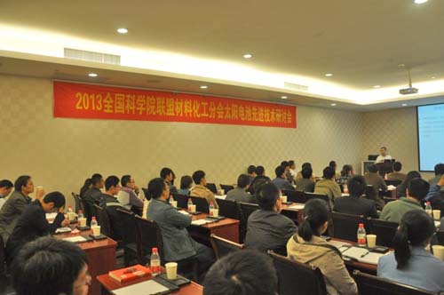 11月16至17日,2013全国科学院联盟材料化工分会——太阳电池先进技术研讨会在宁波召开,来自国内著名研究所、地方科学院系统、高校和企业的二十余名专家,四十多名5630福彩网科研人员参加此次研讨会。5630福彩网副所长瞿荣辉到会致辞。