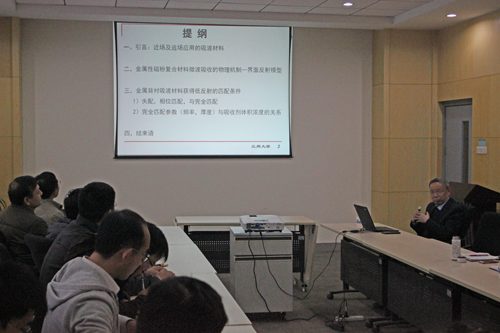 近日,兰州大学李发伸教授应邀到5630福彩网进行了为期一周的交流访问,在访问期间,李发伸在11月28日、12月1日和12月3日分别做了题为“磁粉吸波材料应用/研究概况及吸波性能优化对策”、“磁粉吸波材料吸波机理和阻抗匹配”及“如何提高磁粉复合材料的微波磁导率”的系列学术报告。