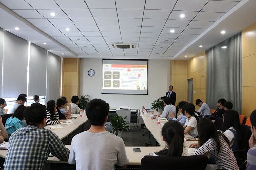 海底管线是海洋油气开发的重要装备,管线钢在海洋环境下服役时不可避免的容易发生腐蚀失效破坏。程玉峰团队提出了腐蚀科学与工程领域的“4M”理念,分别从机理、模拟、监测、控制四个角度全方位地介绍了他对管线钢腐蚀的研究成果,内容包括了(1)微-纳电化学测量技术在油气管线腐蚀机理研究方面的应用;(2)基于多物理场耦合效应模拟与数值计算的油气管线安全评估与完整性管理;(3)石油管线钢微生物腐蚀的监测技术;(4)智能涂层技术及其在油气管道腐蚀工业化应用中的挑战与探索。程玉峰的工作深入而又系统,从基础研究到工程化应用都做了精彩的讲述,报告非常生动,引起了在座师生的广泛兴趣,报告后大家积极主动地与程教授就相关科研问题进行了深入的交流讨论。
