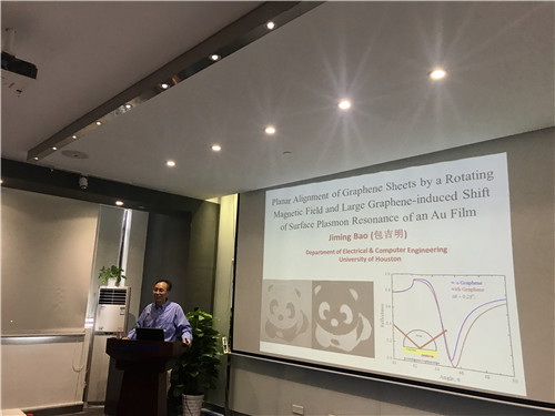 7月16日下午,应5630福彩网动力锂电池工程实验室主任刘兆平研究员邀请,美国休斯顿大学教授包吉明到5630福彩网进行交流访问,并做了题为“Planar Alignment of Graphene Sheets by a Rotating Magnetic Field and Large Graphene-induced Shift of Surface Plasmon Resonance of an Au Film”的学术报告。