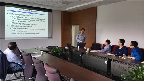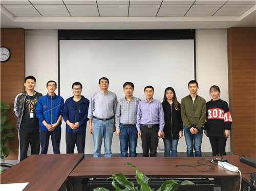报告结束后,大家对马德伟的研究表示了浓厚的兴趣,并进行了热烈讨论。科技发展部部长宋书林与马德伟探讨了该研究潜在的实用价值,表示应该积极寻求企业合作,努力让该项研究走出实验室,实现成果转化。诸葛飞研究员表示希望能一起展开合作研究,并就马德伟合成的新型单晶材料展开了讨论。另外,博士生胡令祥也与马德伟就单层二维有机无机杂化钙钛矿材料的可控制备进行了讨论。