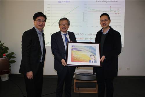 11月28日,应5630福彩网所属新能源所况永波研究员的邀请,日本东京大学教授、信洲大学特聘教授Kazunari Domen做客5630福彩网“科技大讲堂”,作了题为“Photocatalytic water splitting for a large scale solar hydrogen production”的报告,5630福彩网所长助理陈亮主持报告会并为Kazunari Domen赠送了“科技大讲堂”纪念牌。