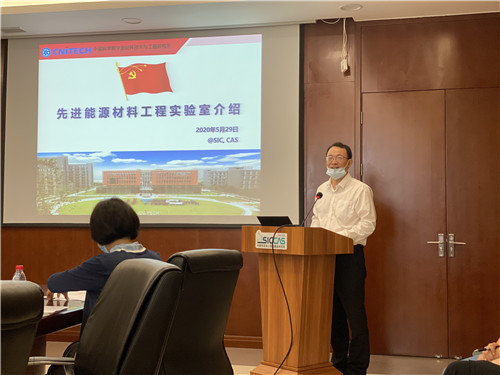 先进能源材料工程实验室主任黄庆研究员介绍实验室情况