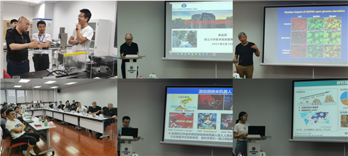 来访团队在吴爱国研究员和李娟研究员的陪同下参观了慈溪医工所新技术展厅和主要实验室,听取了关于团队科研人员和在研项目的介绍。随后,各位专家学者分别围绕各自的研究领域和方向做了精彩的学术报告。黄品同就肿瘤免疫治疗、超声空化与靶向药物递送、肿瘤疫苗及研究意义进行了广泛全面的论述。刘伟长期从事细胞内膜转运和细胞器的结构和功能研究,近年来在自噬调控研究领域取得重要成果,他在报告中详细地阐述了自噬的发生发展、脂滴自噬和蛋白类泛素化修饰机制。