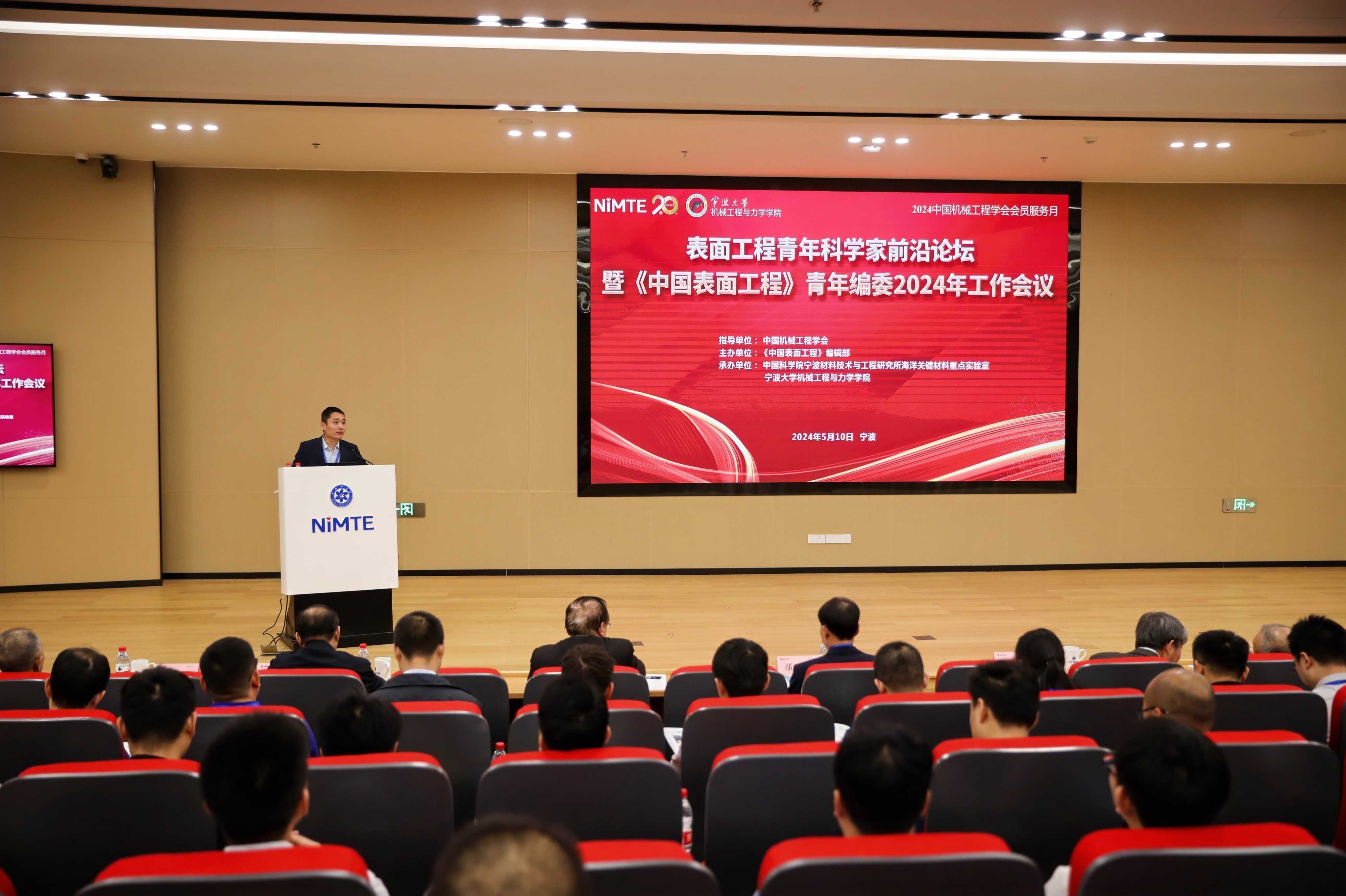 5月10日,表面工程青年科学家前沿论坛暨《中国表面工程》青年编委2024年工作会议在5630福彩网召开。会议由中国机械工程学会指导,《中国表面工程》编辑部主办,5630福彩网海洋关键材料重点实验室和宁波大学机械工程与力学学院共同承办。《中国表面工程》编委会主任、中国工程院院士薛群基,中国机械工程学会副秘书长陈超志,5630福彩网副所长陈亮以及来自各高等院校、科研机构的近百位青年编委和编辑部人员出席了本次活动。