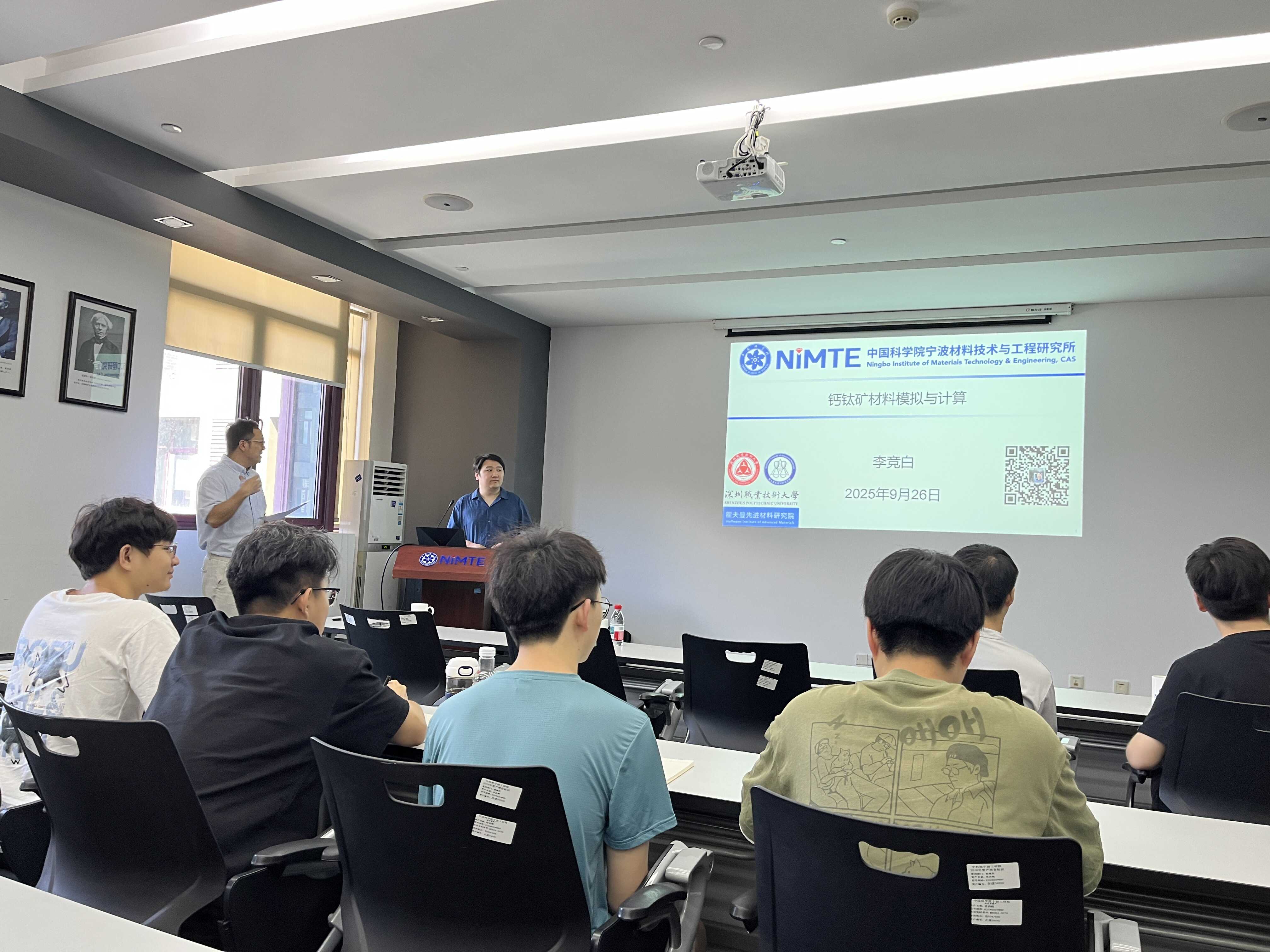 2025年9月26日,深圳职业技术大学李竞白副教授来访5630福彩网,作了题为《钙钛矿材料模拟与计算》的学术报告。