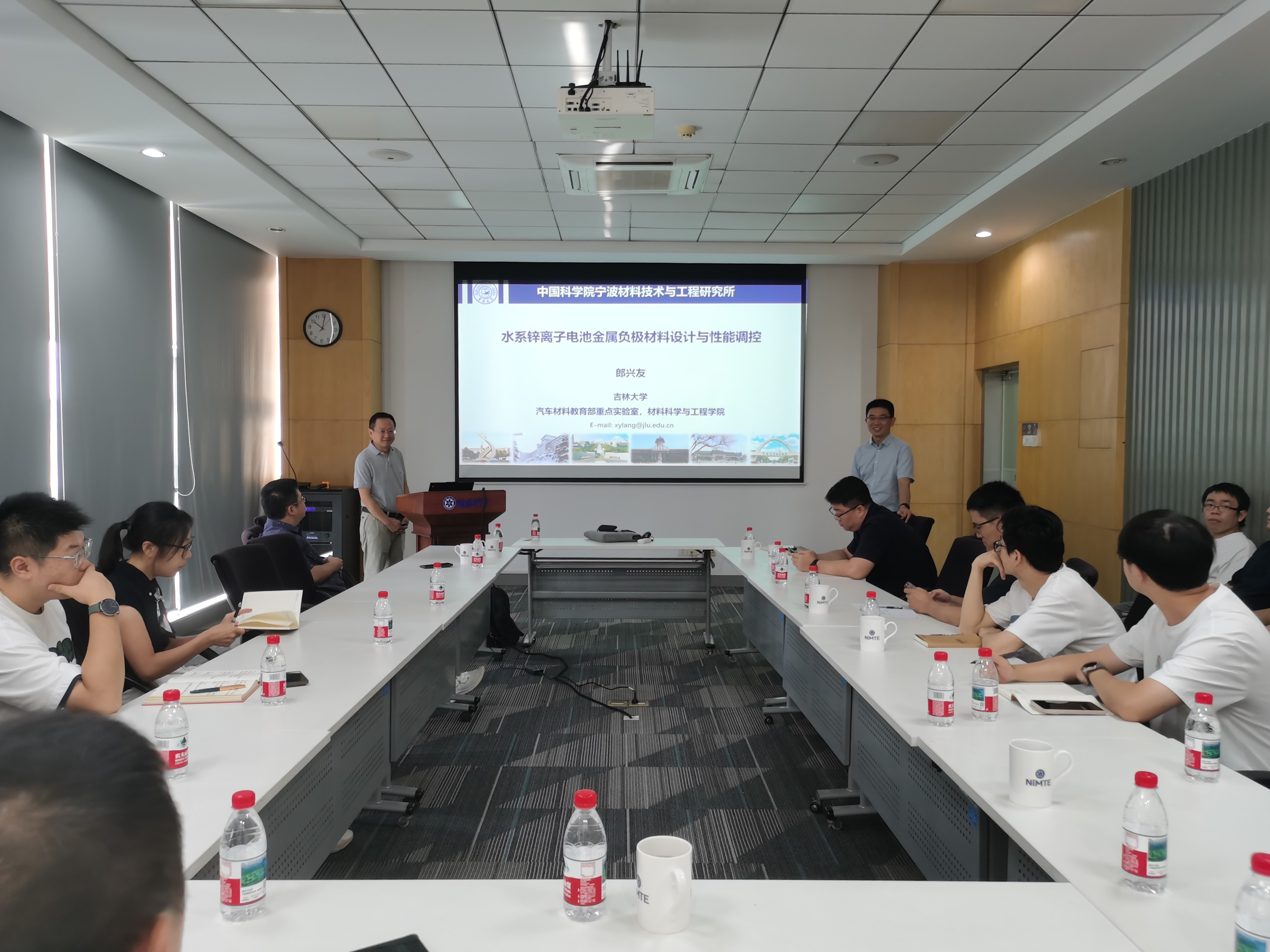 报告围绕水系锌离子电池因锌金属负极可逆性低所导致的倍率特性差、循环寿命短、库伦/能量效率低等问题的解决方案展开。首先基于共晶合金设计,提出导向性金属剥离/电镀抑制枝晶生长,如锌铝共晶结构可以导向锌剥离/电镀。同时介绍了多孔核壳结构无锌负极材料的制备,该材料不容易氧化,可提供有效沉积位点。报告还指出微量添加剂可以改变溶剂鞘结构,在电解液/锌金属界面构建动态分子固态电解质,实现无枝晶和超长寿命的锌离子电池。报告结束后,与会人员就锂离子电池锂枝晶生长、锌离子的吸附以及MOF材料的引入等问题进行了热烈的讨论和交流。
