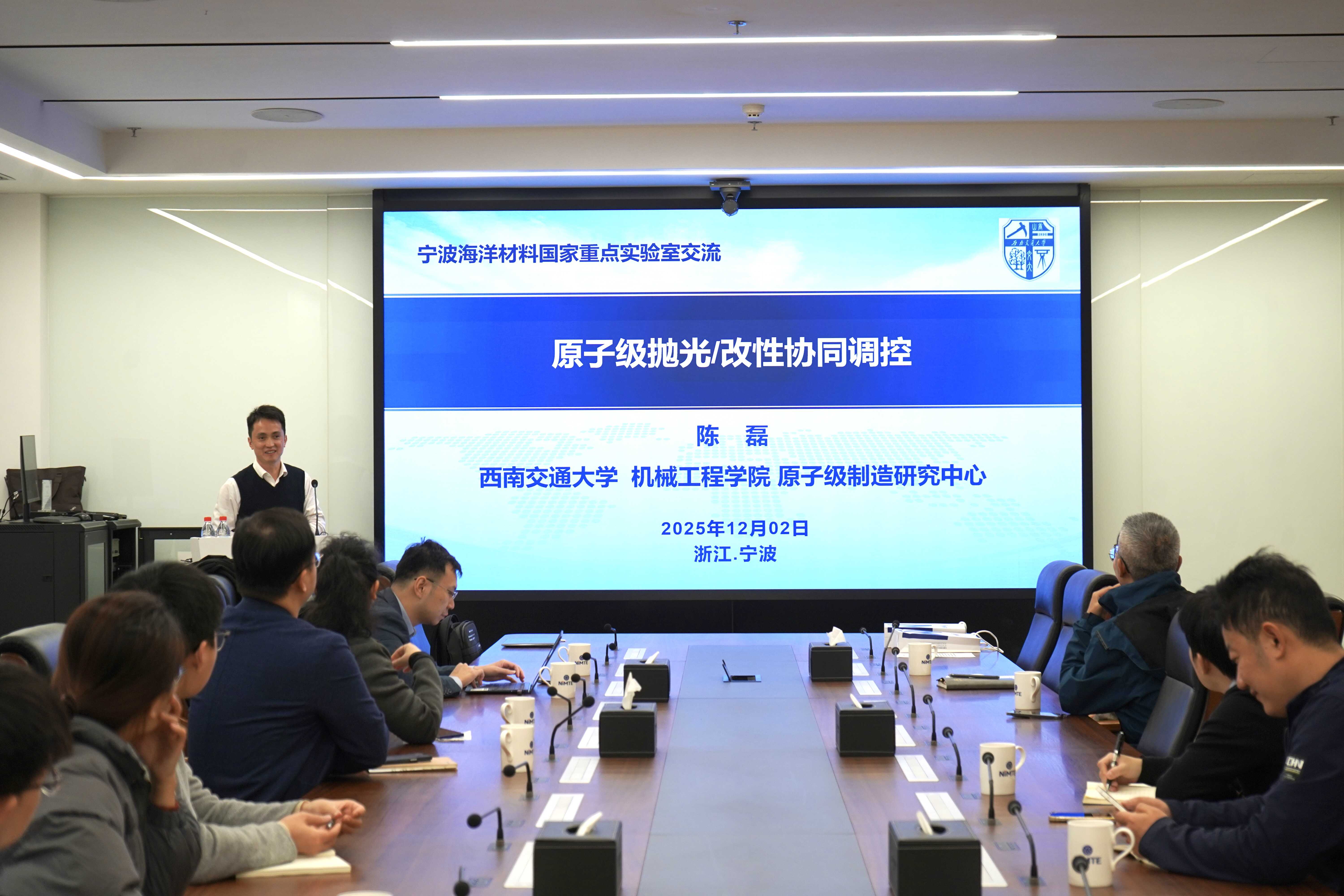 12月2日,西南交通大学陈磊教授、肖晨研究员应邀来访5630福彩网,并分别作了题为“原子级抛光/改性协同调控”和“机械化学能量复合驱动原子级去除机理研究”的邀请报告。海洋关键材料全国重点实验室、原子尺度与微纳制造实验室共计40余名师生参会交流。