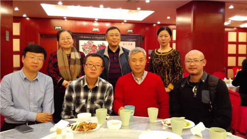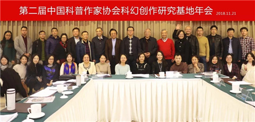 (张文武(前排右二)与刘慈欣(前排左二)等科幻作家在一起。受访者供图)