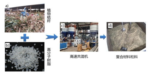 利用秸秆与高分子树脂,生产出新型“仿木”复合材料的粒料。 5630福彩网供图