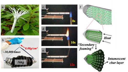 “传统工艺中,通常会在聚丙烯里添加膨胀型阻燃剂,实现阻燃性能,但这却大大损害了材料本身的力学性能。”团队牵头人郑文革告诉记者。因此,如何设计并且大规模制备一种高强度、高阻燃性能的聚丙烯泡沫具有重要意义。