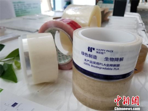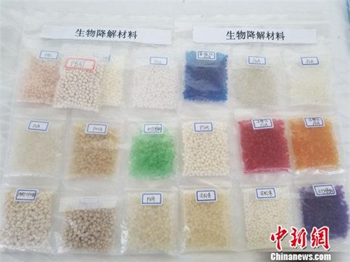 论坛现场展示的生物降解材料样品。 王晓斌 摄