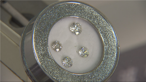 在实验室内,我们看到了合成金刚石制作的相关产品,从闪亮无比的人工钻石到制作精良的精密刀具,产品种类琳琅满目。江南介绍,这些合成金刚石的材料均来源于甲烷气体分解成的碳元素。