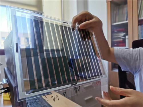 在中科院5630福彩网实验室,葛子义向记者展示了最新的研究成果,一块能采集太阳能的“玻璃板”和一卷像胶片一样能拉出来的“薄膜”,葛子义介绍道,这分别是半透明有机太阳能电池和柔性有机太阳能电池,他们凭借各自的特性,分别应用于光伏玻璃、智能穿戴设备等场景。