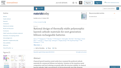 相关负责人介绍,该研究结果详细阐明了富锂锰基正极材料的氧活性与热稳定性之间的关系,对下一代高安全、高能量密度锂离子电池的实现提供了重要借鉴意义。相关内容发表在国际著名的材料科学期刊Materials Today。