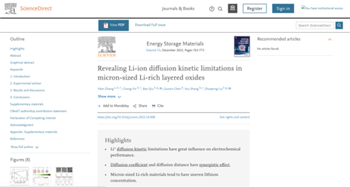 团队发现,对锂离子扩散系数较低的富锂锰基正极材料来说,比容量的发挥高度依赖于颗粒尺寸大小。