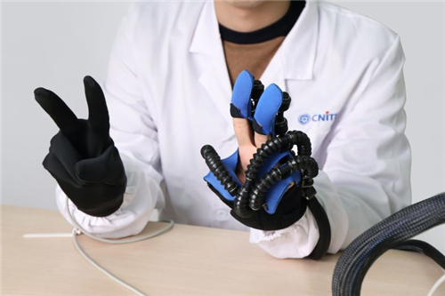 每个手指都搭载有可拉伸弹性传感器的康复手套,可应用于VR游戏、手部康复和人机交互等领域