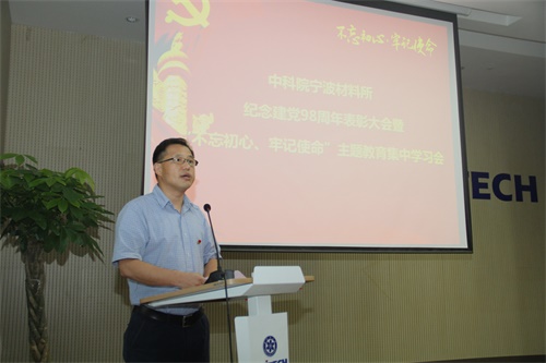 党委副书记(主持工作)李润伟带领与会人员回顾党史,并结合当前国际国内形势深刻变化,指出科技工作者的担当和使命就是听党指挥,勇当科技创新的先锋,用责任和担当肩负起时代赋予的使命。他进一步交流了三点感受:一是坚持初心,正视“科技沙场”。要求全体党员发挥先锋模范作用,做真科研、真做科研;二是下定决心,奋战“科技沙场”,要求全体党员、各党支部、各团队要根据主题教育的要求做好对标检视,认真查找差距,改进工作;三是坚定信心,建功“科技沙场”。切实找准党建工作服务中心工作的切入点和突破口,凝心聚力做好“十四五”规划,做到真出成果、出大成果。
