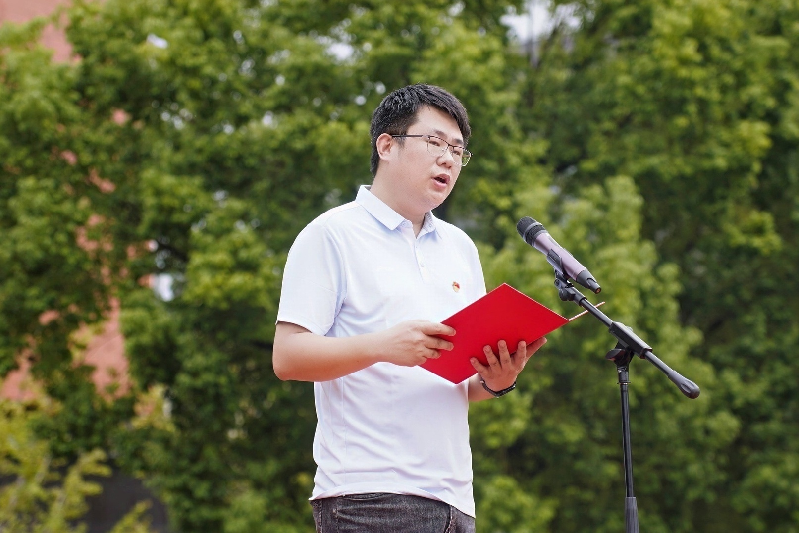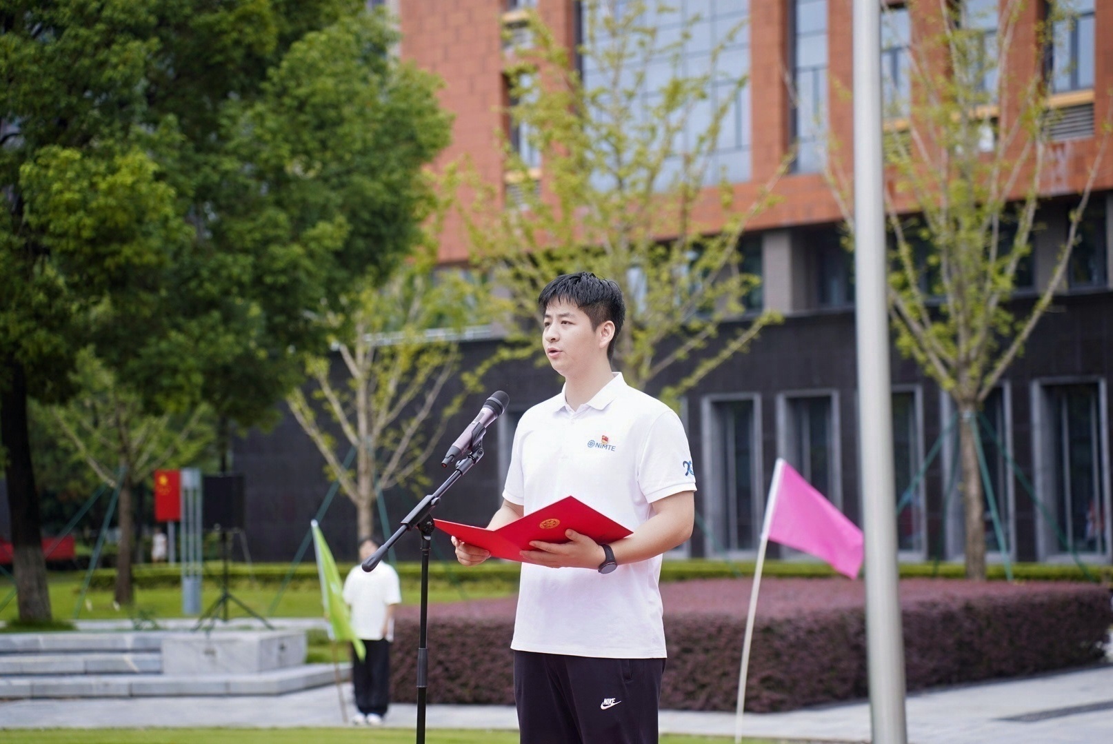 研究生代表杨威龙、科研人员代表宋育杰作“国旗下的演讲”。杨威龙表达了青年学生作为国家战略科技力量的生力军,要将个人理想融入国家重大战略需求中,胸怀“国之大者”,在建设科技强国的征程中书写青春画卷。宋育杰围绕重大任务争取、组织实施,分享了自身承担重大任务的经历和感悟,并表态将以攻坚的拼劲、改革的闯劲、务实的干劲完成重大任务,为抢占新材料领域科技制高点努力奋斗。