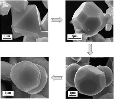 尖晶石锰酸锂材料是一种具有三维锂离子通道的锂离子电池正极材料,具有价格低、电位高、环境友好、安全性高等优点,适合应用在电动工具和电动车的储能电池领域。然而,锰酸锂正极材料的高温循环性能差,限制了其大规模应用。现有研究一般认为锰酸锂的比表面积是影响其高温循环性能的重要因素之一,低的比表面积可以减少锰酸锂颗粒与电解液的接触,从而减少锰元素在电解液中的溶解,提高电池的高温循环性能。因此,锰酸锂的形貌控制制备技术研究成为锂离子电池材料的研究热点之一。多年以来,高端锰酸锂产品主要由日本企业制造并应用于电动汽车领域,国内在这方面的研发一直没有取得突破性进展。