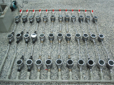 实验室搭建的模拟自来水的评估测试线(测试时间历时1年)