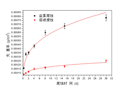 铝合金水表试样在不同腐蚀条件下的失重率曲线
