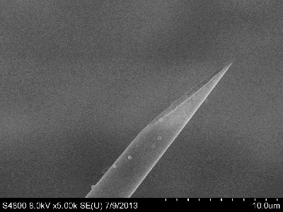 该系统是将电化学沉积与蘸笔工艺结合起来,电解液从电极出来后被直接还原固化,可以形成高深宽比(100以上)的微纳结构。采用自动控制技术,可方便地制备复杂的三维结构和阵列。与现有技术相比,该“直写式”电化学沉积技术工艺简单、易于操作,能够有效降低集成电路和微电子器件尺寸,利于在微纳器件中集成更多功能。液相“直写”技术由于能够在常温、常压下完成,既可以进行纳米图案沉积、完成纳米光刻功能;也可以进行纳米结构成型,完成纳米功能器件的制作;还可以对基本纳米材料单元进行操控,完成纳米集成,是满足生物纳米器件、仿生系统、大面积柔性光电子器件与系统等制造要求的重要手段之一。采用该技术既可以用于制备高频太赫兹天线、精密传感器,也可以实现微器件长距离、越障互联,还可以用来合成新材料单晶或多晶等。如果采用阵列式笔头,该技术可以将批量制备技术与材料的微纳尺度效应结合起来,易于批量制备。